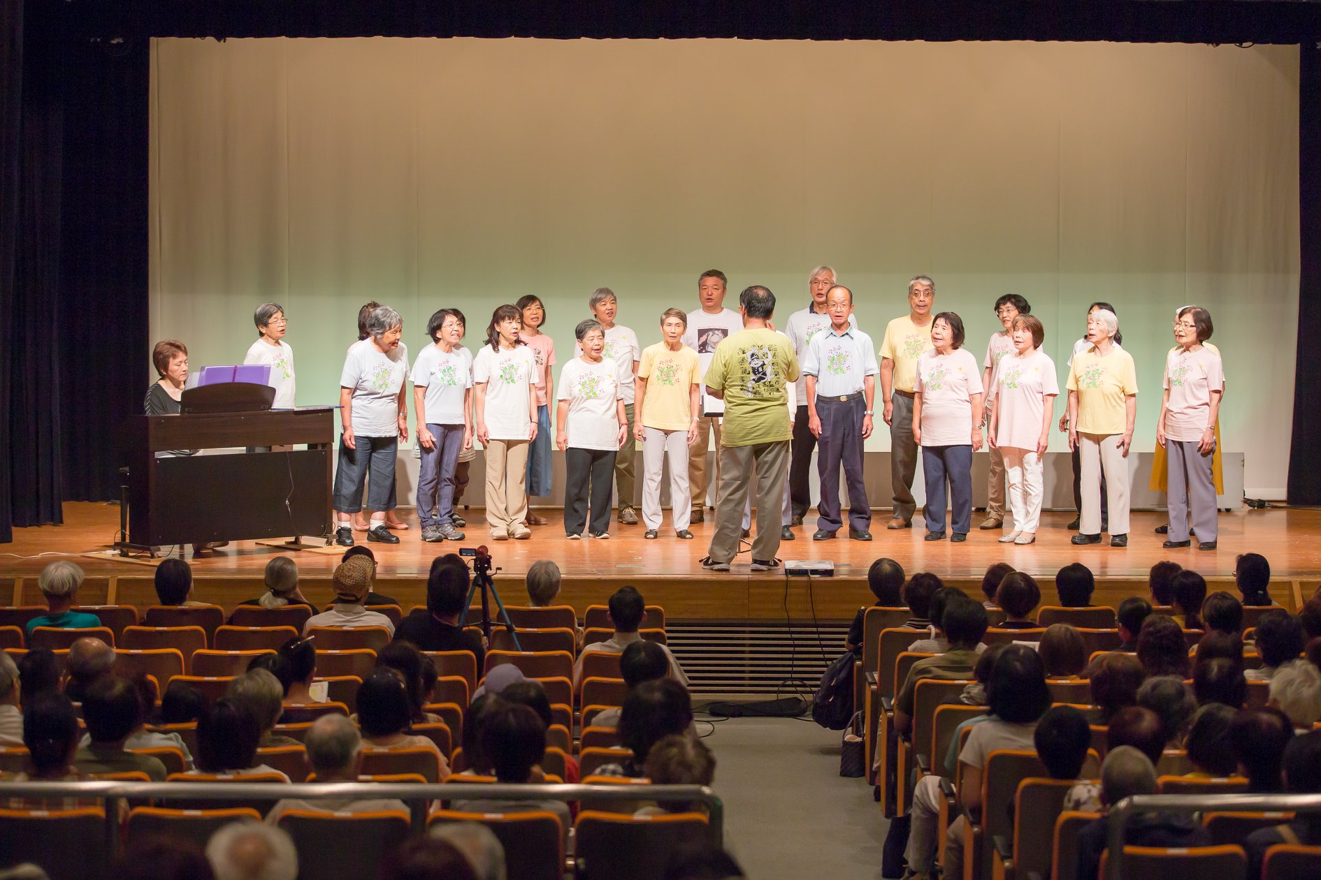 - 金沢市卯辰山に建つ原爆被災者追悼碑の歌「平和の子ら」の合唱(歌:金沢紫金草合唱団、伴奏:坂本麻美さん)でスタートした講演会。