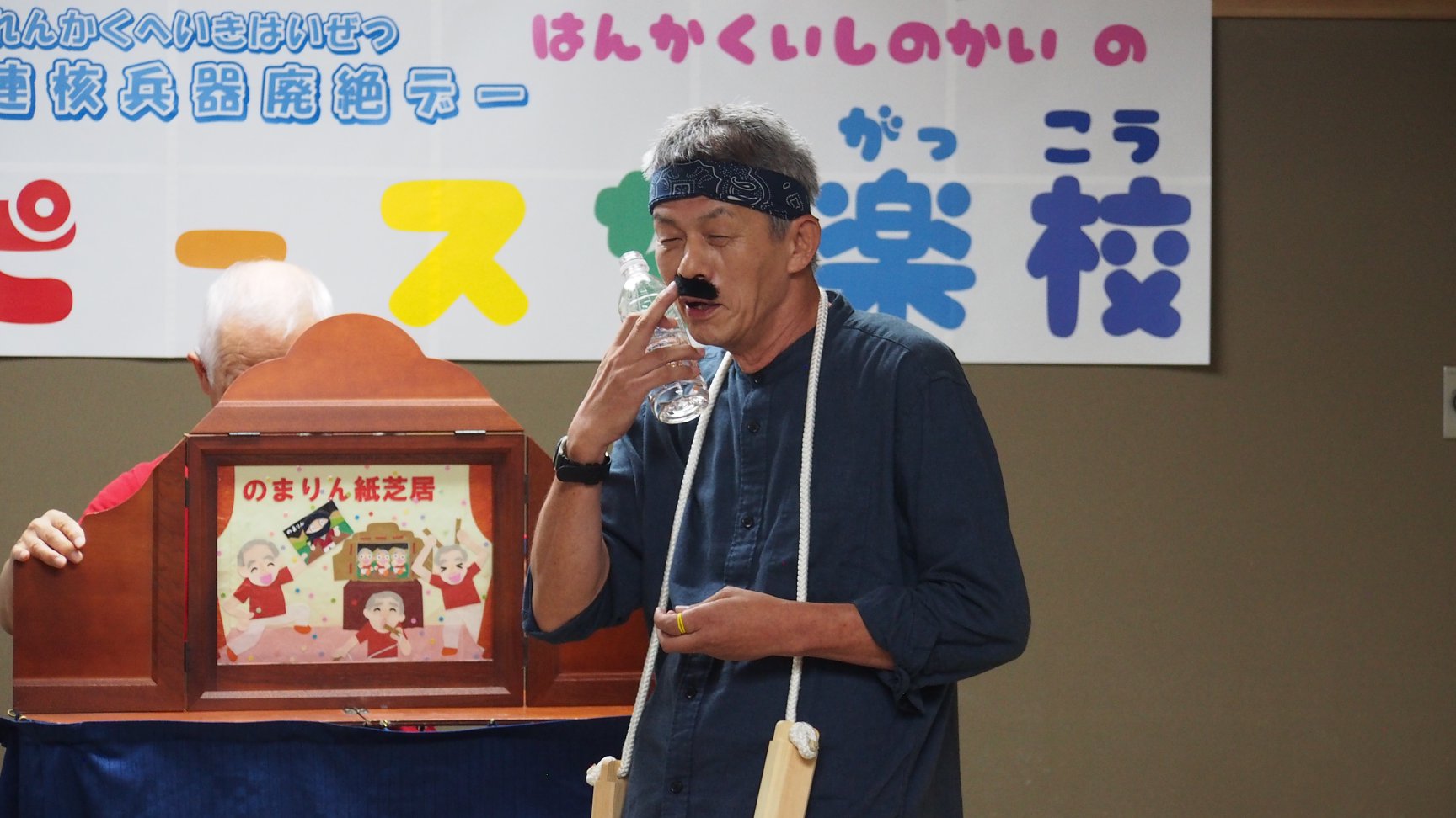 - 講演の最後には、落語の「鼻唄三丁矢筈斬り」にかけて、核の本質を説明。核兵器は持ってしまったら使いたくなるもの、内部被ばくとは時間が経ってから細胞が少しずつ壊されていくものであると語りました。