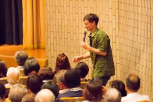 - 予定の終了時間を大きく超過してしまったものの、聴衆はメモを取りつつ、熱心にアーサーさんの話に耳を傾けていました。