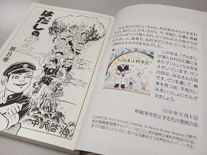 石川県内8市町の小中学校65校に、日本語版66セット、英語版(Barefoot Gen)2セット