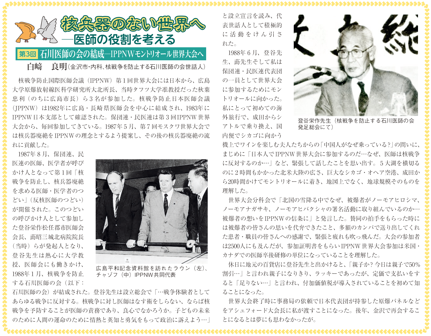 第3回:石川医師の会の結成―IPPNWモントリオール世界大会へ(2019年10月号)