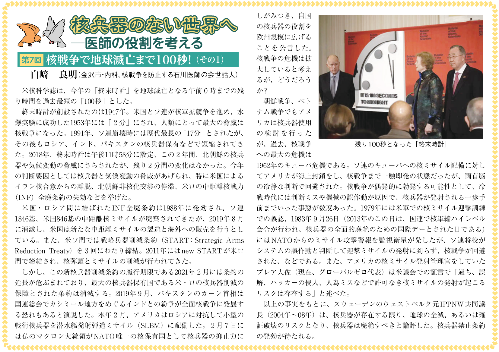 第11回:“2020年を核廃絶の年に” 核戦争を防止する石川医師の会への入会を呼びかけます〔最終回〕(2020年7月号)