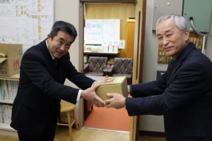 1月18日、宝達志水町立志雄小学校を訪れ、『はだしのゲン』を1セット寄贈しました。