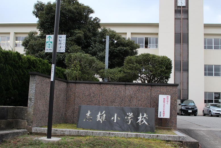帰り際、ふと目に入った志雄小学校校歌には、「誠の道を守りつつ明るい心養おう」との詞。『はだしのゲン』を正面から受け止めるのは、低学年の子どもには、ちょっと難しいかもしれません。それでも志雄小学校の子どもたちが『ゲン』と向き合い、友達になって、ぜひ平和を愛する、明るく気高い心を養ってほしいなぁ。そう願いながら、また次の寄贈実現に向けての気持ちを新たにしました。
